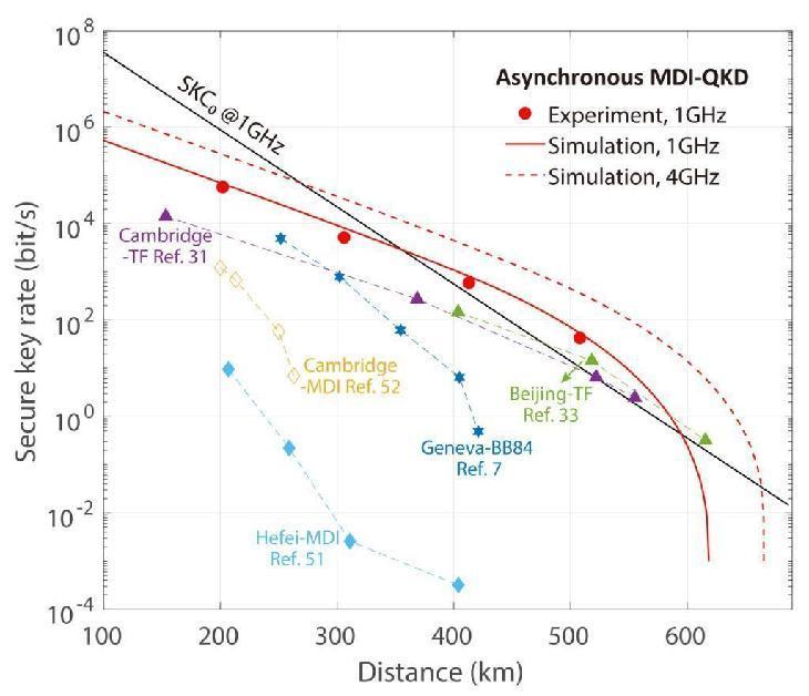这一研究的最大贡献是创造了城际量子密钥率的新纪录。在相距400公里处的密钥率较此前提高了6个数量级。在传输距离306公里的安全密钥率超过每秒5000比特,传输距离201公里下量子密钥率超过每秒57000比特,已可满足城市间语音通信的实时加密需求。
