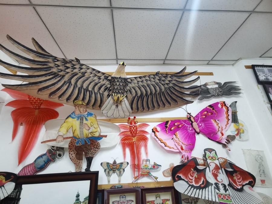 “风筝魏”工作室内展出的部分精美风筝作品。新华社记者 刘惟真 摄