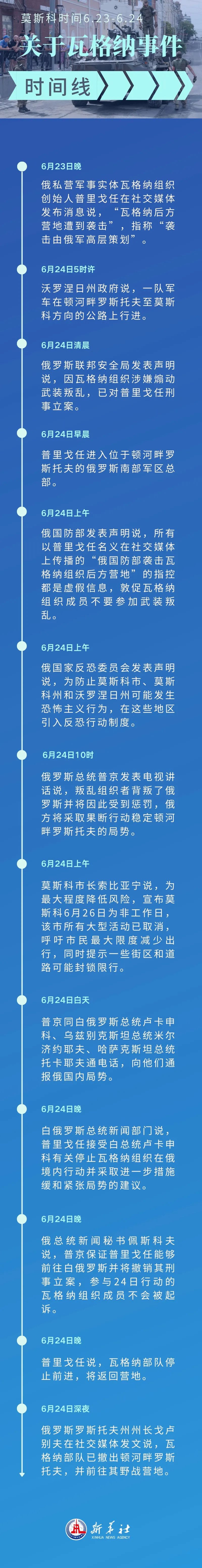 新华社莫斯科6月25日电 在24小时内,俄罗斯境内局势骤紧又回稳,被俄罗斯总统普京定性为“叛乱”的“瓦格纳事件”暂告段落。