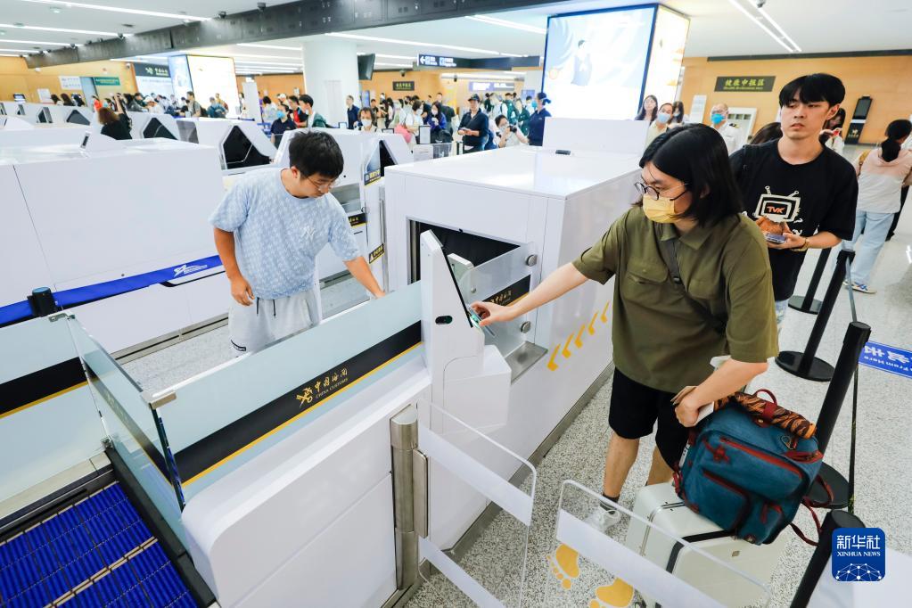 在成都天府国际机场,入境旅客同时通过智能双通道(6月21日摄)。新华社记者 沈伯韩 摄