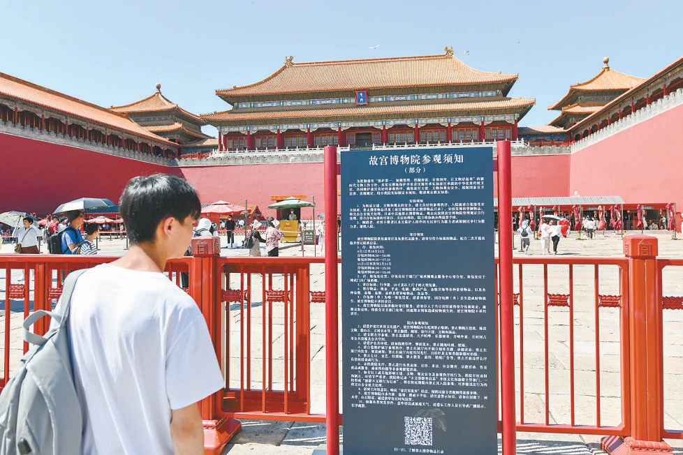 昨天,《故宫博物院参观须知》开始实施,故宫午门外摆放出印有参观须知部分内容的告示牌。记者 邓伟摄