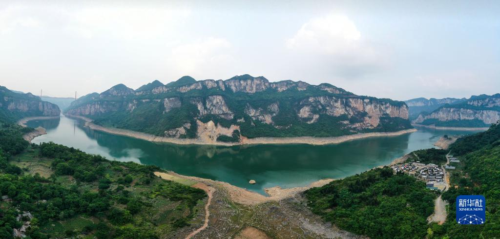地处乌江源头水域的贵州省黔西市新仁苗族乡化屋村风光(5月30日摄,无人机照片)。新华社记者 杨文斌 摄