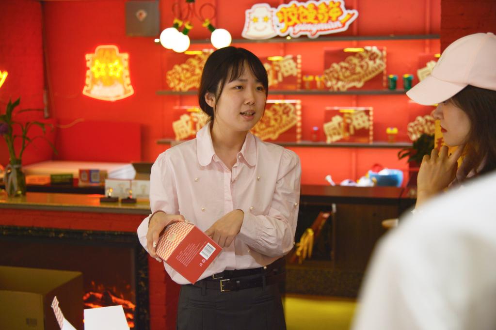 于嘉慧正在向顾客介绍产品。新华社记者李志浩 摄