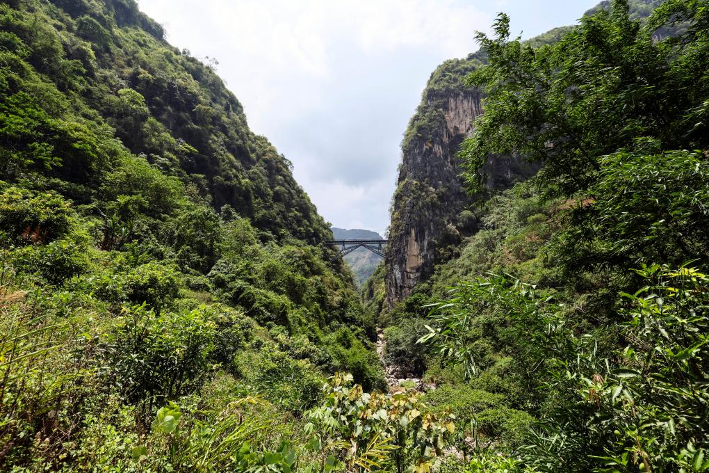 这座在滇越铁路屏边县段的“人字桥”由法国工程师设计,高102米,长71米,宽4米,于1907年3月开始施工,1908年12月竣工,因支撑桥体的两节钢梁呈人字形结构,故被称作“人字桥”。“人字桥”碑记中记载,修桥过程中,共有800余名劳工死亡,被称为“‘人字桥’八百壮士”。百余年来,这座桥挺立在悬崖峭壁间,至今仍在发挥着作用。