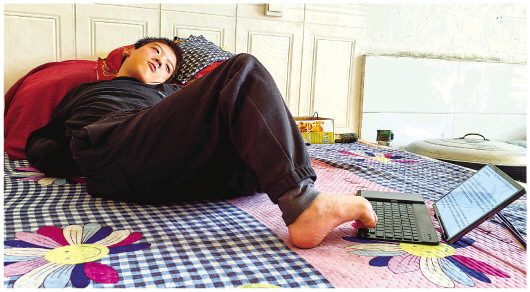 这些“独语”来自一名重度脑瘫患者胡少杰。今年25岁的他,生活在陕北黄土高原上一个名叫胡家圪崂的自然村。在那里的石窑洞中,全身无法动弹的胡少杰,常常在“明月半墙、桂影斑驳”的深夜时分,用脚趾触击键盘,将喷涌而至的灵感敲字成诗: