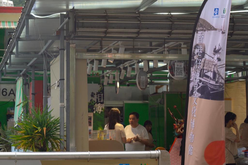 香港仔海滨公园绿树成荫。在这里,有一处外型酷似昔日住家艇的临时建筑。当中摆放的精美龙舟模型、色彩鲜艳的渔家帽、印有避风塘旧景的展板以及门口的布招牌,提示这里就是渔民文化博物馆。