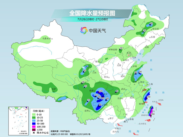 中央气象台预计,今天,青海东部、江苏北部、浙江南部、西南地区东部、台湾岛大部等地部分地区有大到暴雨,其中,浙江南部、四川盆地中部、重庆西部、台湾岛东部和南部等地部分地区有大暴雨,台湾岛东部和南部等地局地特大暴雨(250~350毫米)。
