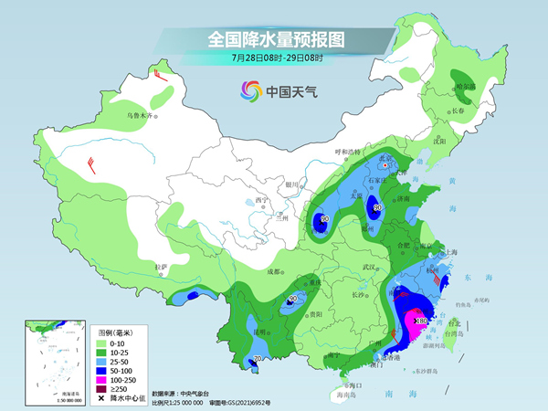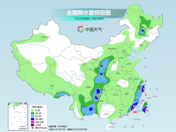 明天,黑龙江西南部和中部、西藏东南部、西北地区东部、江南东部和南部、西南地区东部和南部、广东东南部、台湾岛等地部分地区有中到大雨,其中,吉林西部、陕西中部、浙江中北部、福建东南部、四川盆地东南部、重庆西部、贵州西北部、云南东南部、广东东南部、台湾岛东部和南部等地部分地区有暴雨或大暴雨(100~300毫米)。