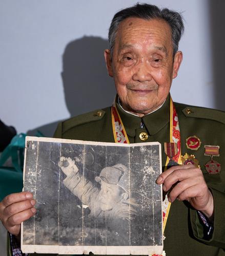 图中拿着照片的老人是我的父亲邓彰德。他1951年随部队入朝,参加了上甘岭战役,荣立特等功,被授予“二级战斗英雄”荣誉称号,荣获朝鲜民主主义人民共和国一级国旗勋章。