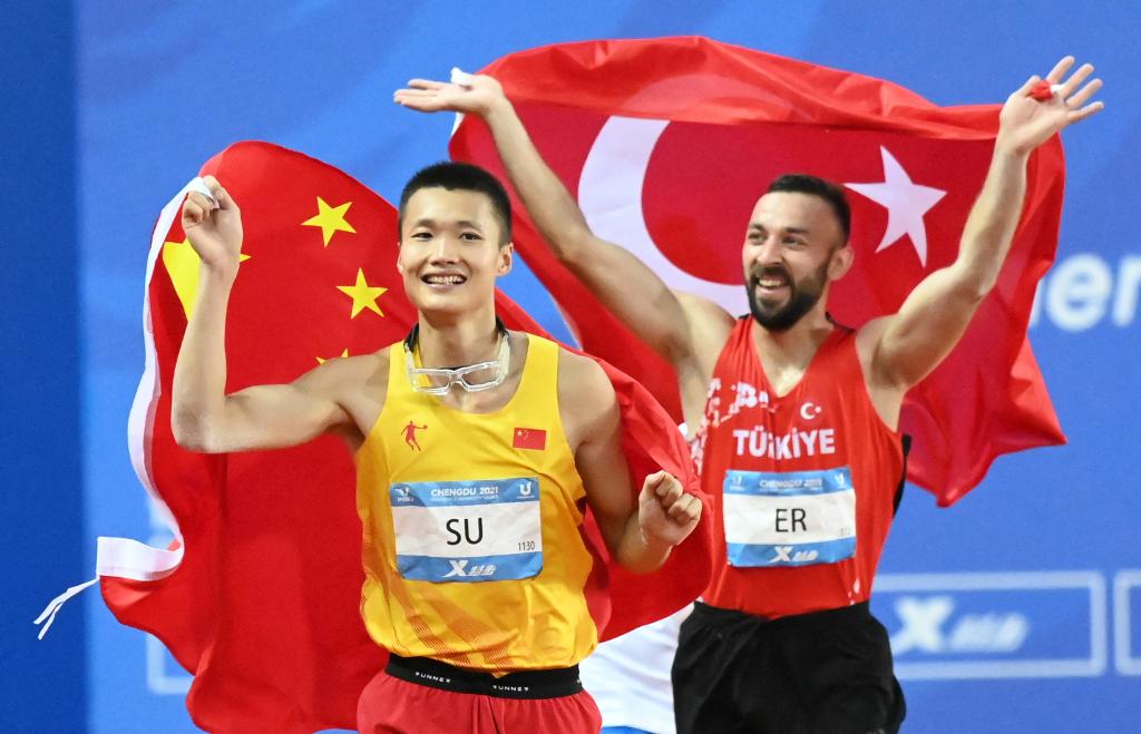 大运会的赛场上还见证着各代表团间的友谊。3日上午的体操比赛中,孤身一人前来参赛的斯里兰卡队运动员阿马娅·卡洛克塔吉在高低杠上腾跃,站在一旁保护、指导的是土耳其队教练。当她完成动作走下台,奥地利队教练首先上前鼓励。