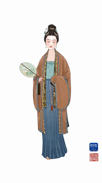 数百年时间沉睡,褐色罗镶彩绘花边广袖袍颜色褪去,为了更好呈现这件华美的罗袍,我们按资料复原出它在少女身上的模样。