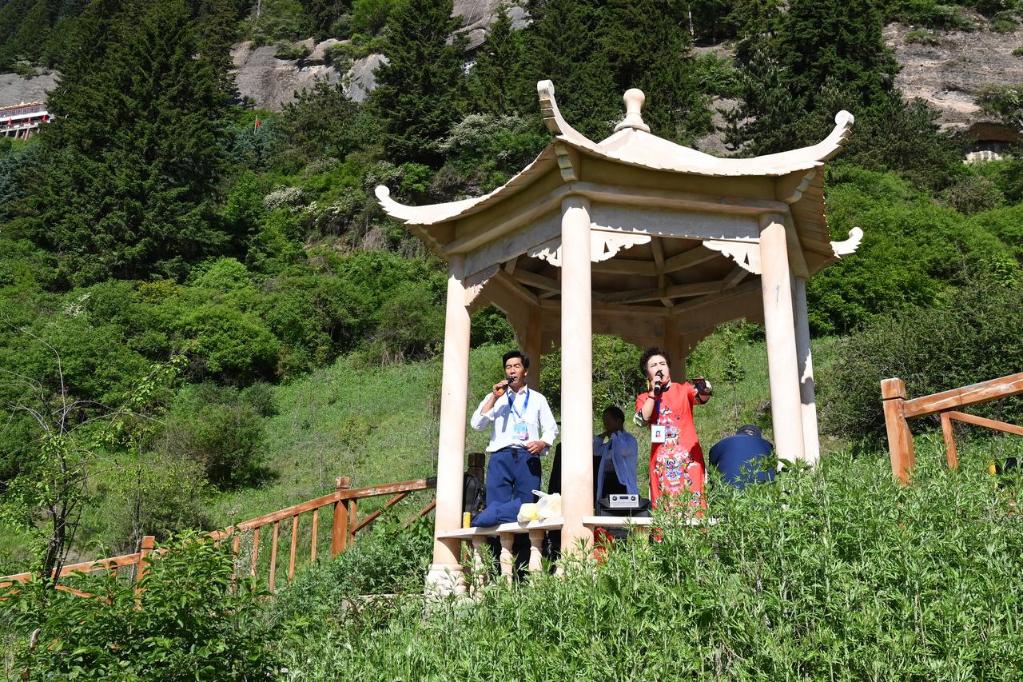 6月13日,在甘肃省临夏回族自治州和政县松鸣岩景区,花儿爱好者表演花儿。新华社记者 范培珅 摄