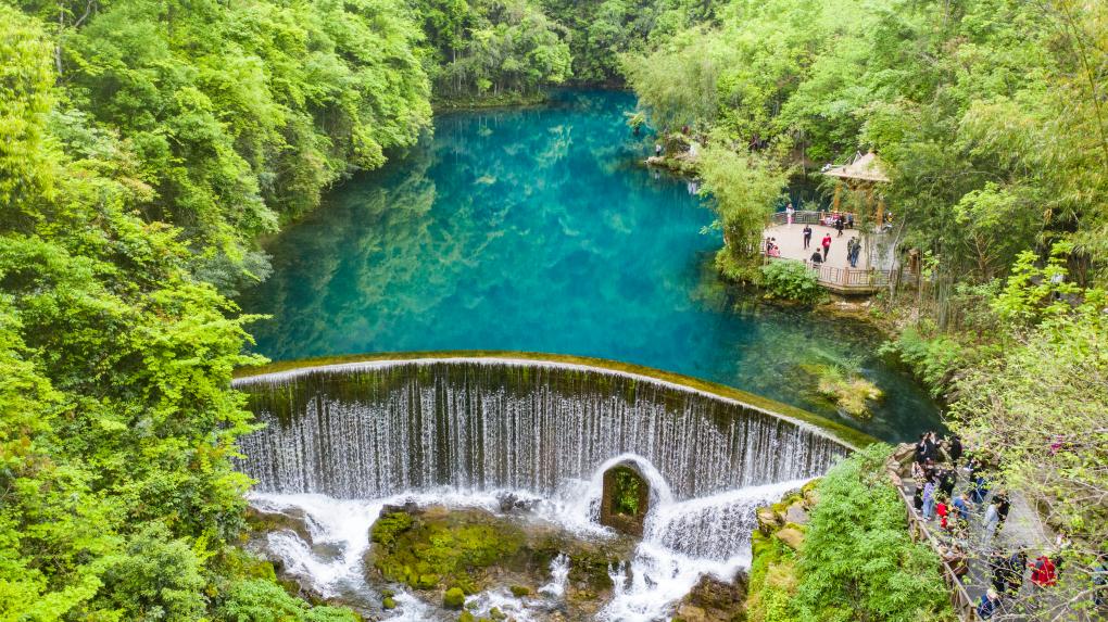 荔波小七孔景区内河水清澈(2020年4月10日摄)。