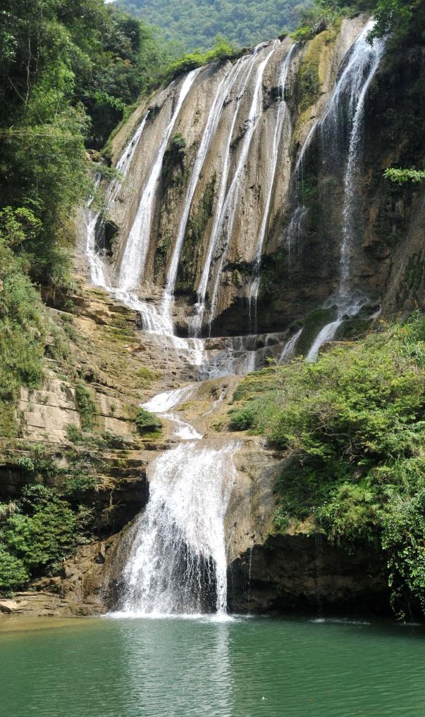牛角寨瀑布群景区坐落在环江中部的明伦镇