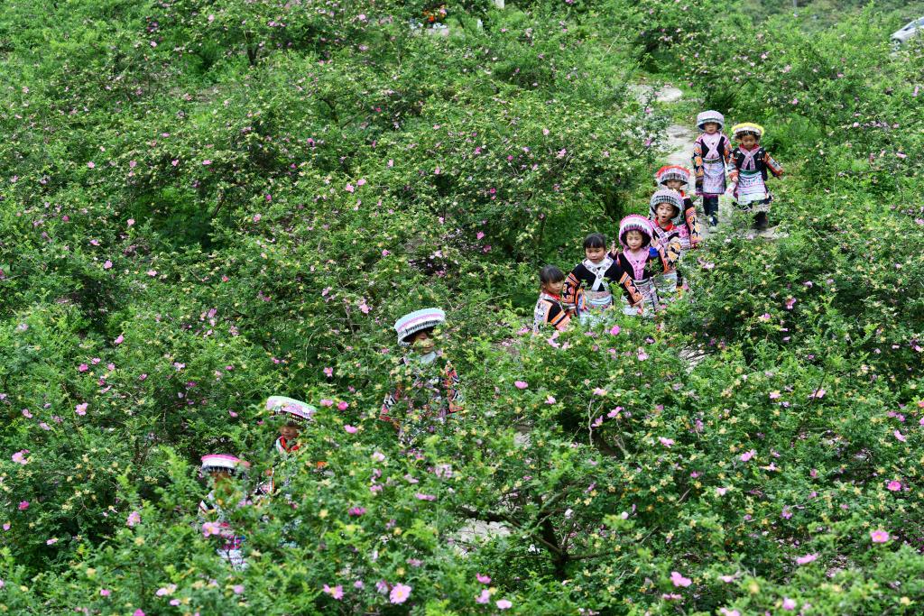 孩子们在十里刺梨沟景区游玩(2021年5月19日摄)。