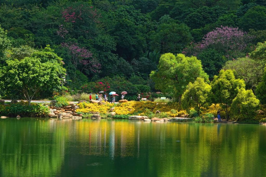 市民在青秀山公园的青山绿水间游玩(2022年10月4日摄)。