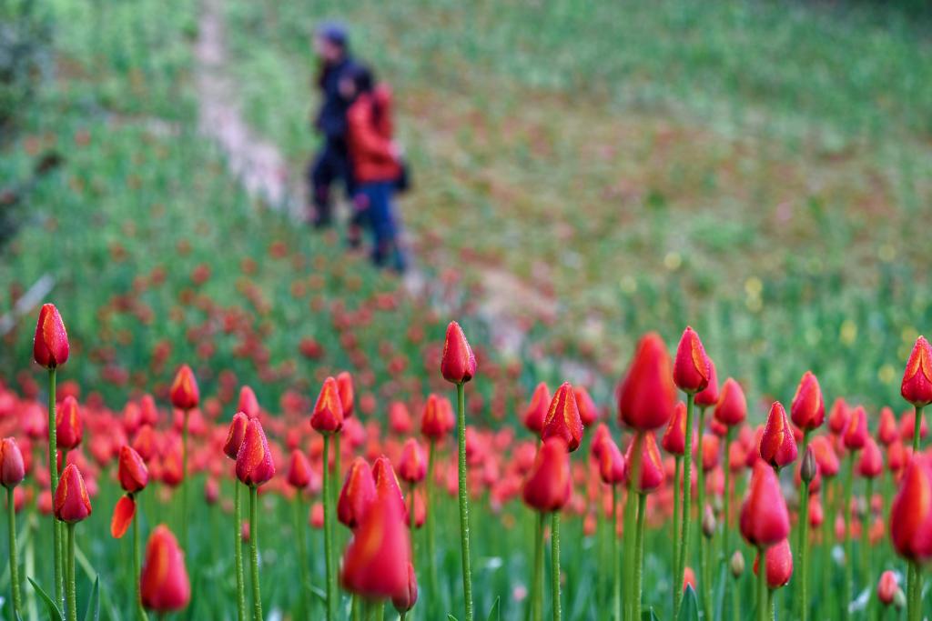 游客在龙架山国家森林公园赏花观光(2021年3月9日摄)。