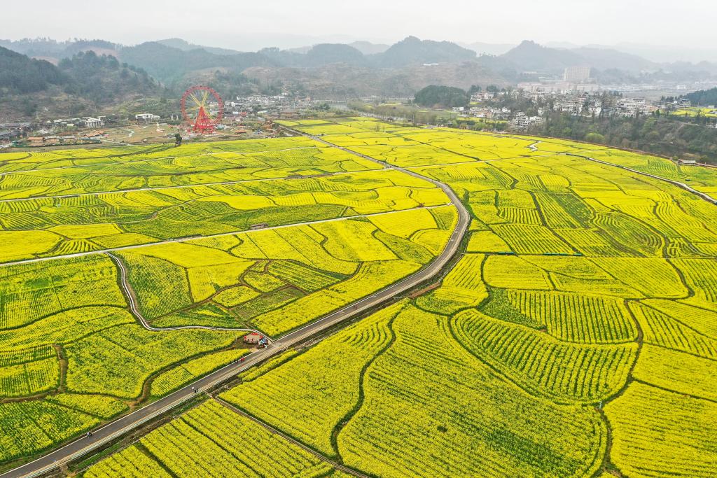 贵定县盘江镇“金海雪山”景区油菜花海(2023年3月12日摄)。