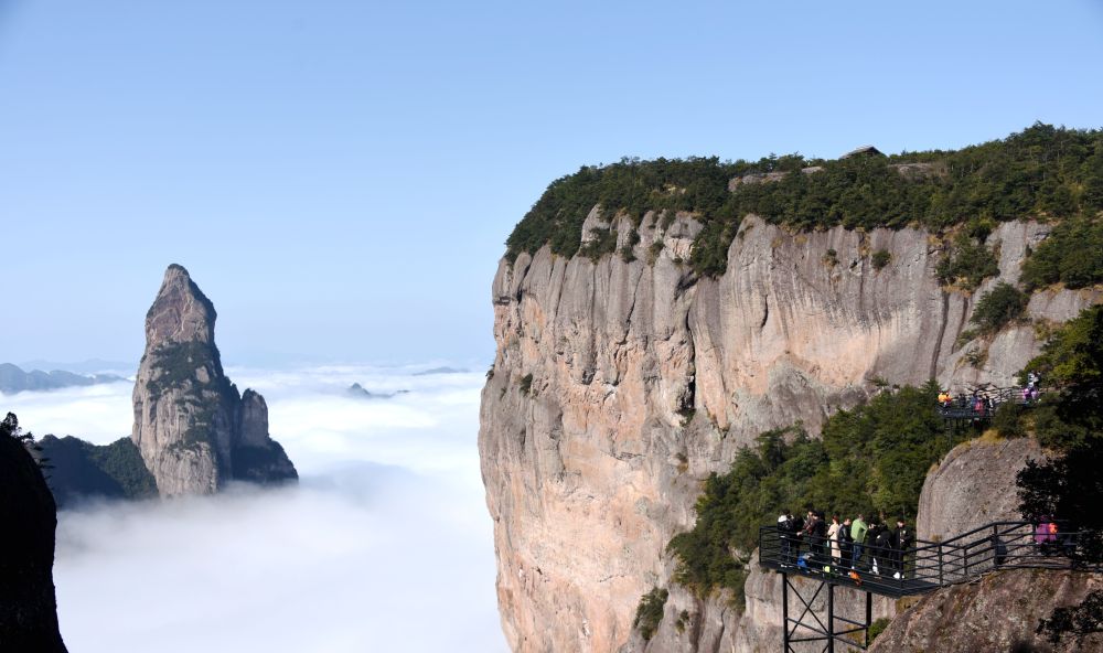 游客在神仙居风景区游览。