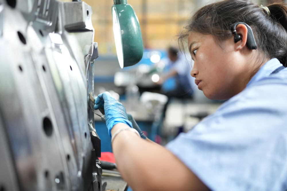 在台州市黄岩区国家级专精特新“小巨人”企业浙江赛豪实业有限公司,工作人员对模具进行镜面抛光。