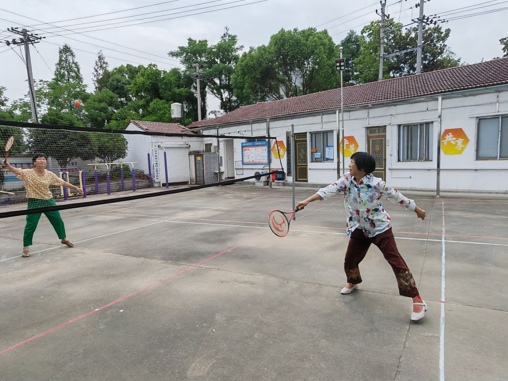 台州市天台县平桥镇山庵村的村民正在练习柔力球。