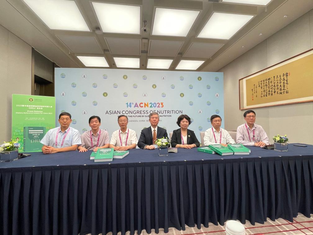 会议期间举办的《中国居民膳食营养素参考摄入量(2023版)》新闻发布会现场。新华社记者 李恒 摄