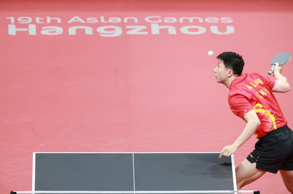 9月22日,中国队选手马龙在比赛中发球。新华社记者 刘续 摄