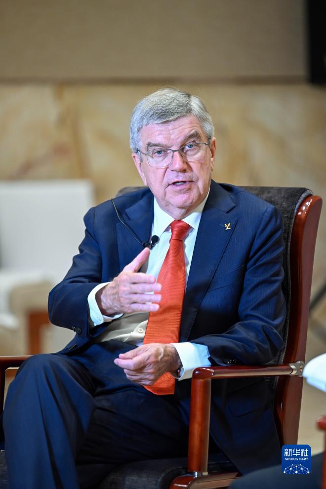 9月22日,国际奥委会主席巴赫在杭州接受新华社记者专访。新华社记者 曹灿 摄