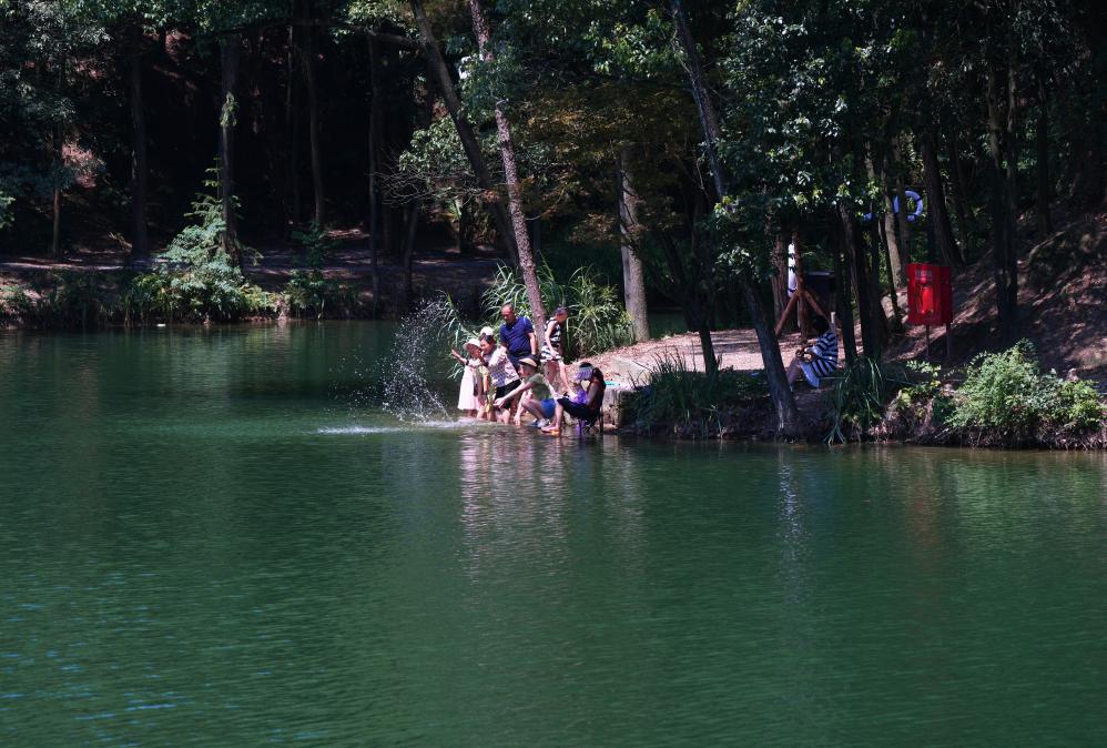 图为游客在缙云山黛湖景区游玩。(秦廷富 摄)