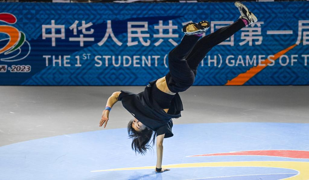11月4日,南京市选手高紫嫣在第一届全国学生(青年)运动会霹雳舞女子预赛中。新华社记者 张爱林 摄