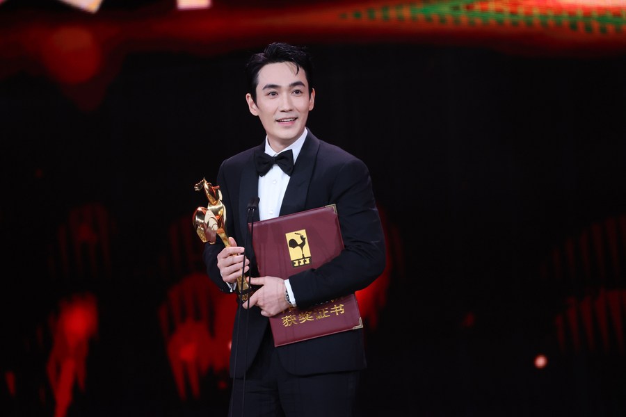 2022年11月12日,朱一龙凭借《人生大事》获得第35届中国电影金鸡奖最佳男主角奖。新华社发(曾德猛摄)