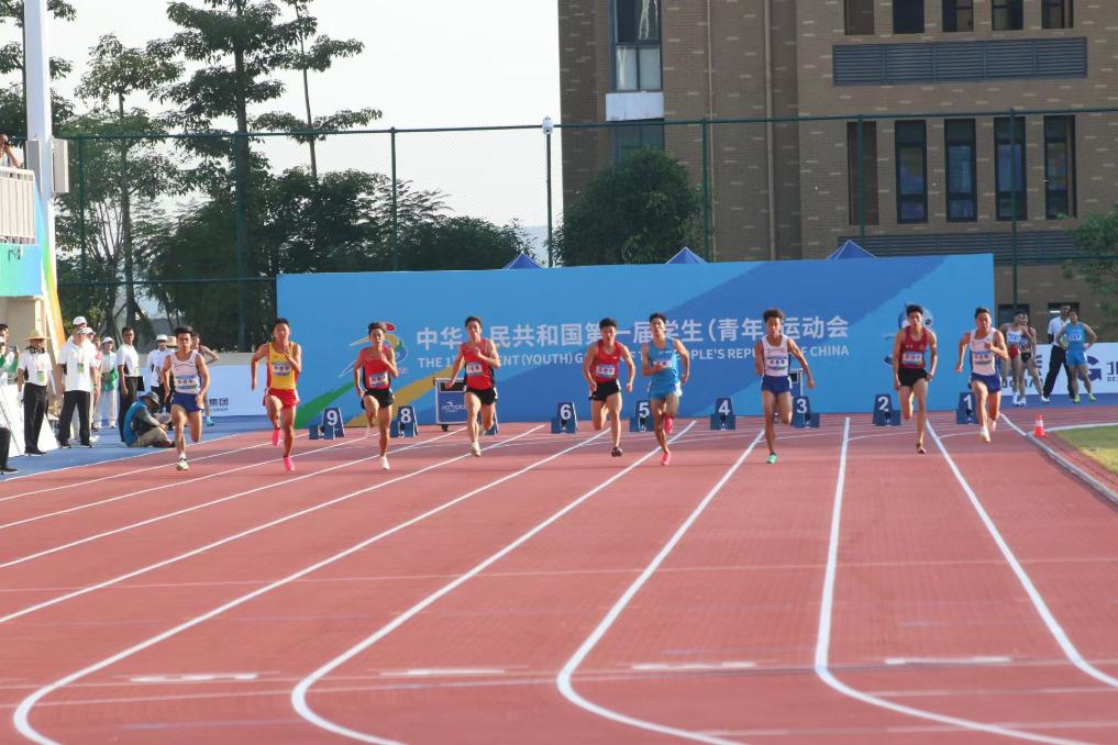 11月2日,吴昊霖(右三)以10秒31获得田径(公开组)男子100米冠军,并打破全国少年纪录。图为比赛现场。(图片由主办方提供)