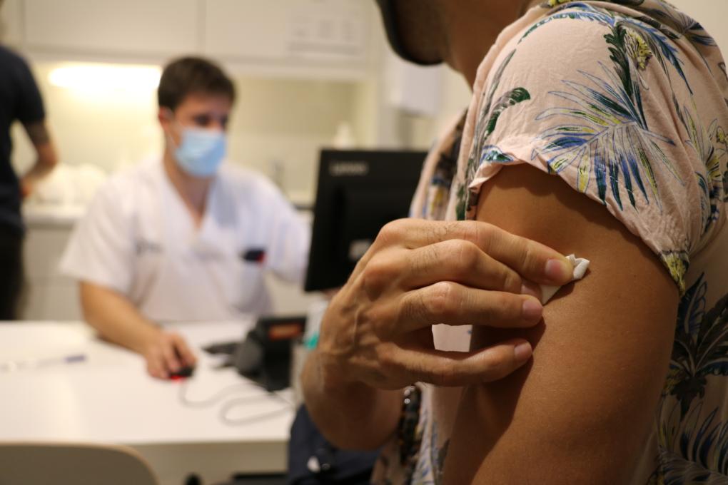 2022年8月3日,一名男子在西班牙巴塞罗那一家诊所内接种猴痘疫苗。新华社发(伊斯梅尔·佩拉科拉摄)