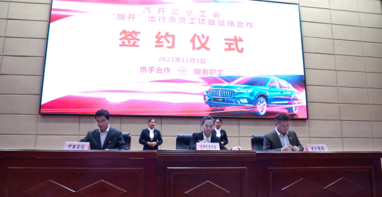 会上同时举办了长春市汽开区总工会举办红旗品牌推介会暨“旗开”出行惠员工项目启动仪式。该项目是汽开区总工会助力一汽创新发展,精准服务基层干部职工的重要举措。中国石化长春石油分公司作为受邀单位,向在场代表推介中国石化品牌、易捷品牌,并推出“出行”惠员工优惠政策服务职工,提升职工幸福感、获得感。