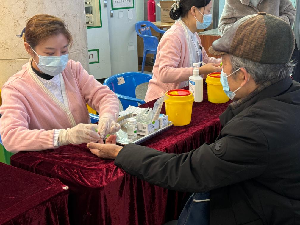 11月13日,患者在武汉市中心医院查验血糖。新华社记者 杨慕茜 摄