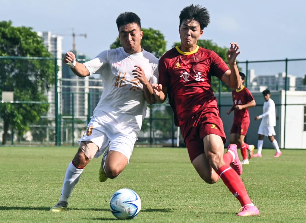 11月8日,代表北京队的北理工球员王建(左)在学青会足球大学组与重庆队的小组赛中进攻。新华社记者 张爱林 摄