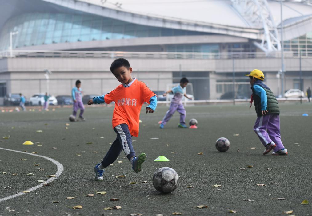 10月30日,周边小学生放学后来北京理工大学(中关村校区)操场练习足球。新华社记者 任超 摄