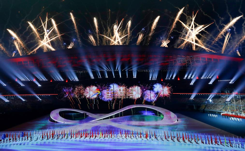这是11月5日拍摄的开幕式焰火表演。当日,第一届全国学生(青年)运动会开幕式在广西体育中心体育场举行。新华社记者 胡星宇 摄