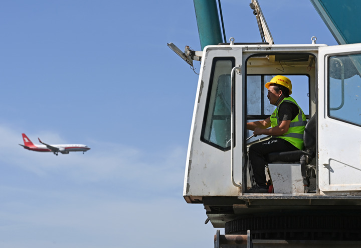 工作人员在空客天津第二条总装线项目开工现场准备施工。新华社记者赵子硕摄