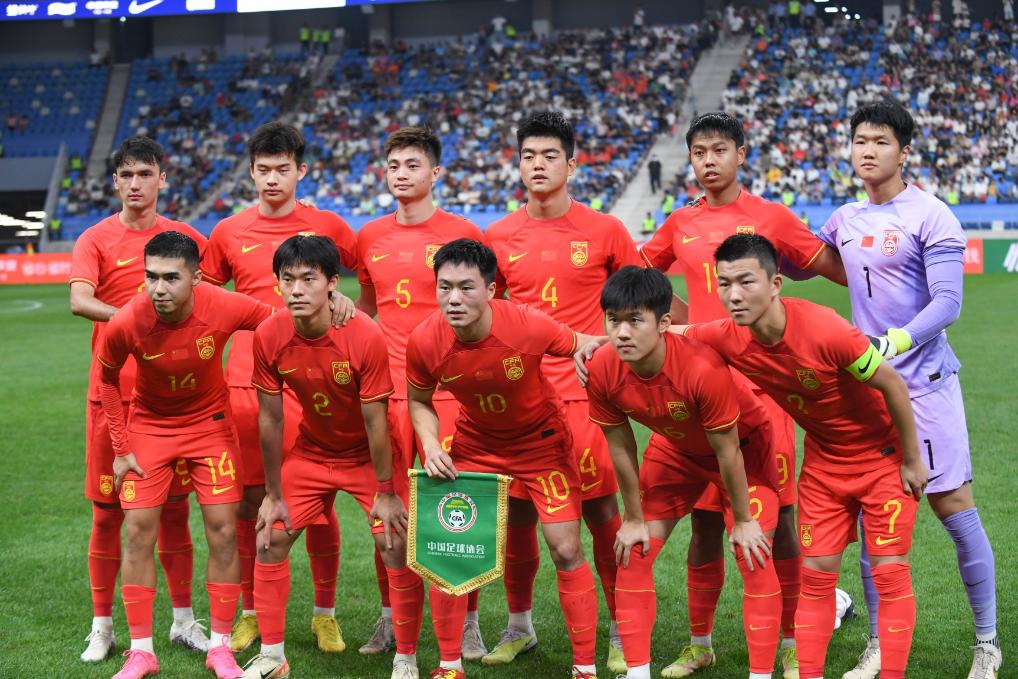 9月9日,,在辽宁大连举行的2024年卡塔尔U23亚洲杯预选赛暨巴黎奥运会男足亚洲区资格赛G组第二轮比赛中,中国队以2:1战胜印度队。图为中国队球员在赛前合影。新华社记者龙雷摄