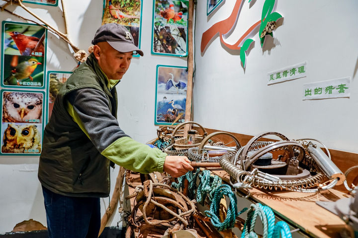 自然保护中心展示反盗猎清理出的猎套(11月11日摄)。新华每日电讯记者 沈伯韩 摄