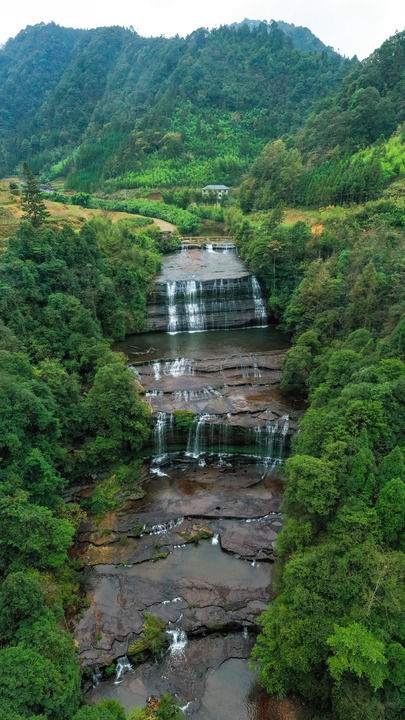 今天,站在八节洞瀑布附近的山岗上举目眺望,黄荆老林的三层林区清晰可辨:最高处是原始森林,遮天蔽日,郁郁苍苍;中间是经历过砍伐后重新长出的次生树林,无声讲述着曾经的遭遇,也默默展示着大自然强大的修复能力;最靠近村庄和公路的地方是年轻的人工林,它们犹如一道道绿色的城郭,拱卫着古老的森林。