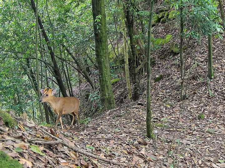 这是古蔺县赤水源黄荆老林自然保护中心布设在黄荆老林中的红外相机拍摄的麂子(2022年5月6日摄)。颜宇供图