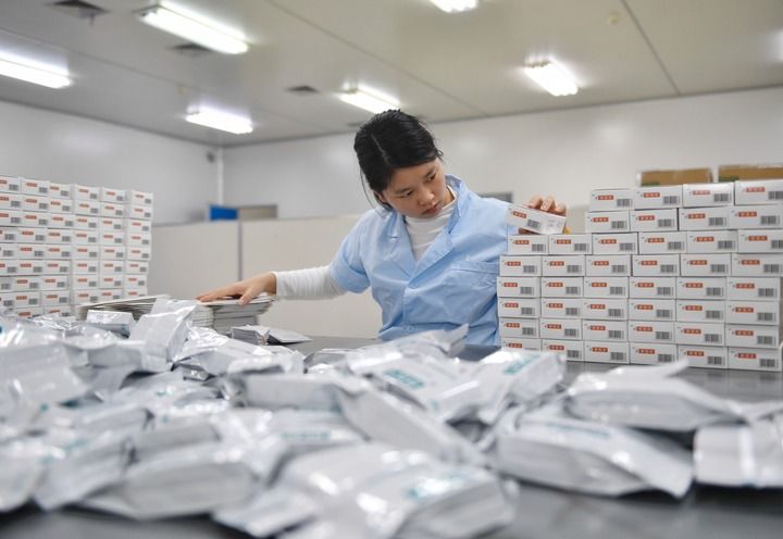 11月10日,在古蔺县肝苏药业有限公司内,工作人员在分装用赶黄草制成的药。新华每日电讯记者 刘坤 摄