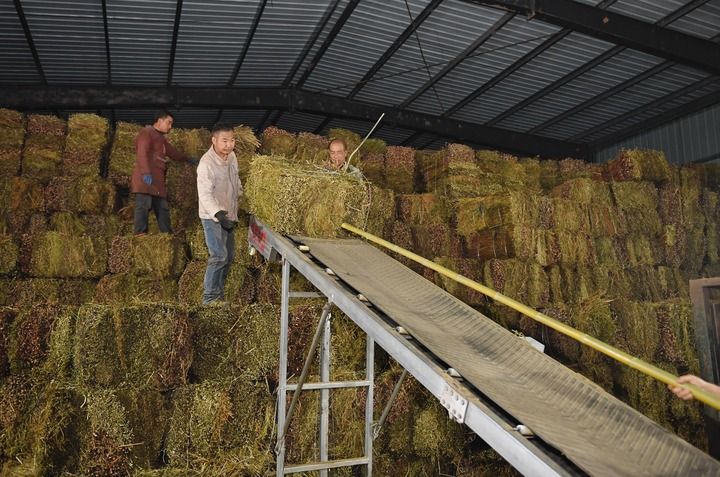 黄荆镇香楠村赶黄草收购站内正在进行打包作业(11月10日摄)。新华每日电讯记者 刘坤 摄