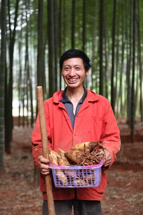 53岁的祁平是挖笋的高手。冬笋长在竹林下面,只露小尖,没有丰富的经验很难发现。“看,这里面有俩。”他一边刨土,一边变换着下铲的方向,控制着力道,生怕把竹笋挖断。在黄荆村,每家每年挖竹笋都能挖出四五千斤。