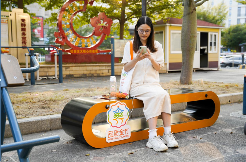 广州增城区荔城街金竹社区的智慧座椅。(金竹社区供图)