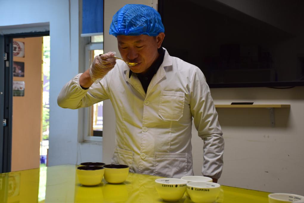 山云辉正在进行咖啡杯测。新华社记者黄韬铭 摄