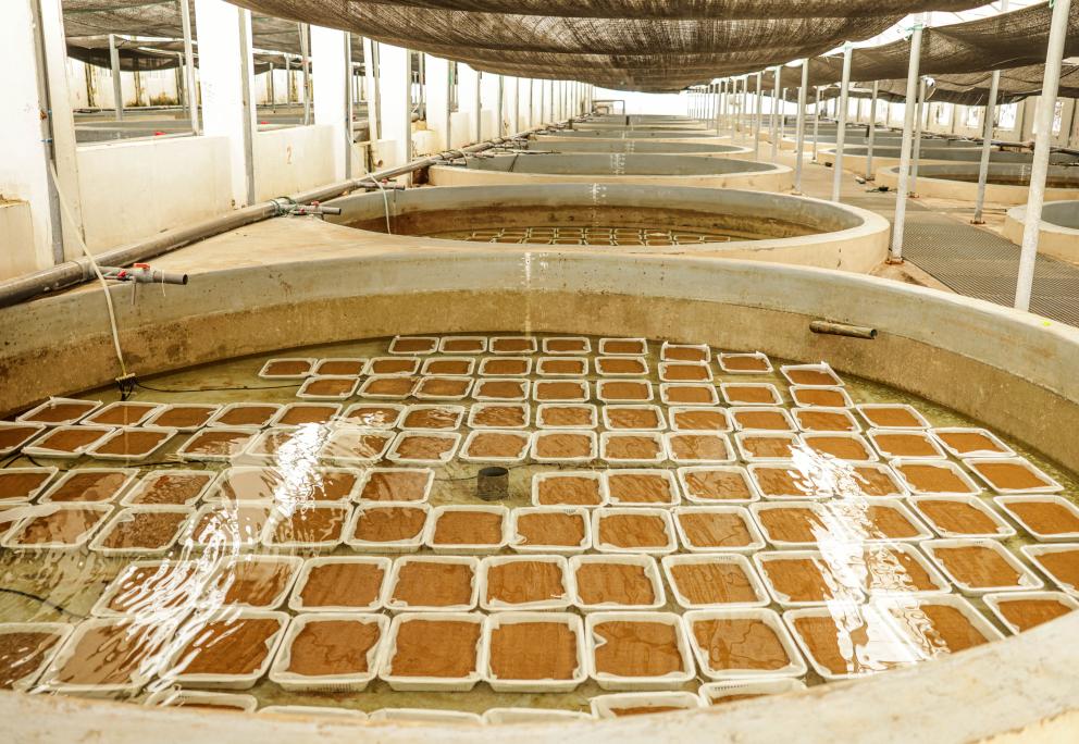 在“山东荣成鳗草科技小院”的育苗车间里,海水循环的声音不绝于耳。种子萌发池中,一个个长方形花盆整齐排列,“配方泥”下面都是正在萌发的种子。“这是我们研发的淡水促萌和低盐育苗的鳗草实生苗人工培育技术。”李文涛介绍,“开始促萌时,我们使用的是淡水,随着时间的推移,萌发池里水的盐度也要逐渐提升,让鳗草苗慢慢适应海水的盐度后,再移栽到海底。”有了这些技术,自然环境下半年多才萌发的鳗草种子,最快可以在一周内萌发。