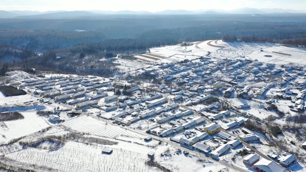 图为12月1日航拍的吉林省白山市抚松县东岗镇果松村。(新华社记者 周万鹏 摄)